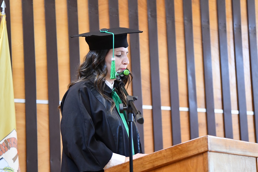 Luego, la Magister en Protección de Cultivos, Ms. Lorena Liebl, habló en nombre de sus pares, agradeciendo a la Comunidad Académica la UNI por la oportunidad de formación en diferentes disciplinas del conocimiento.