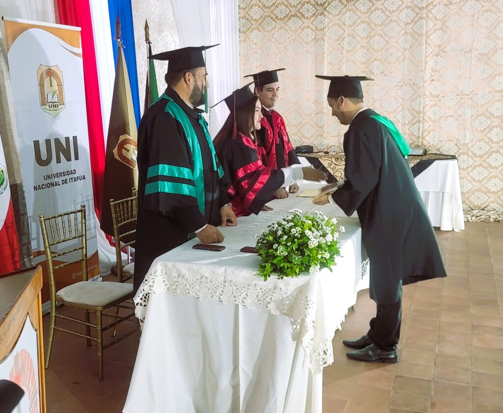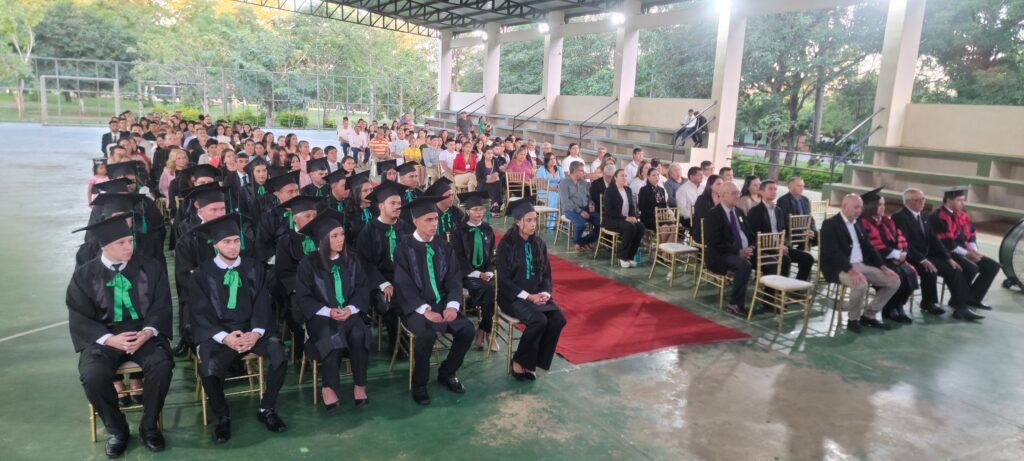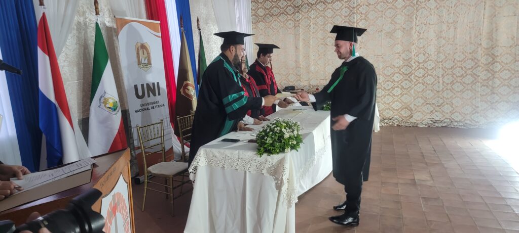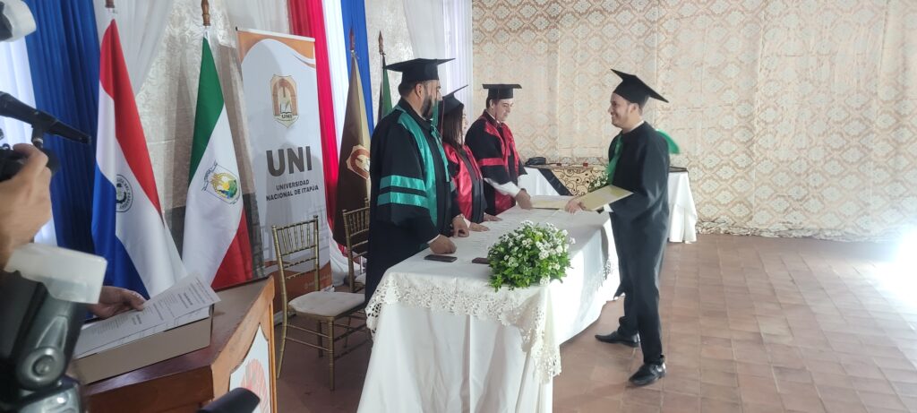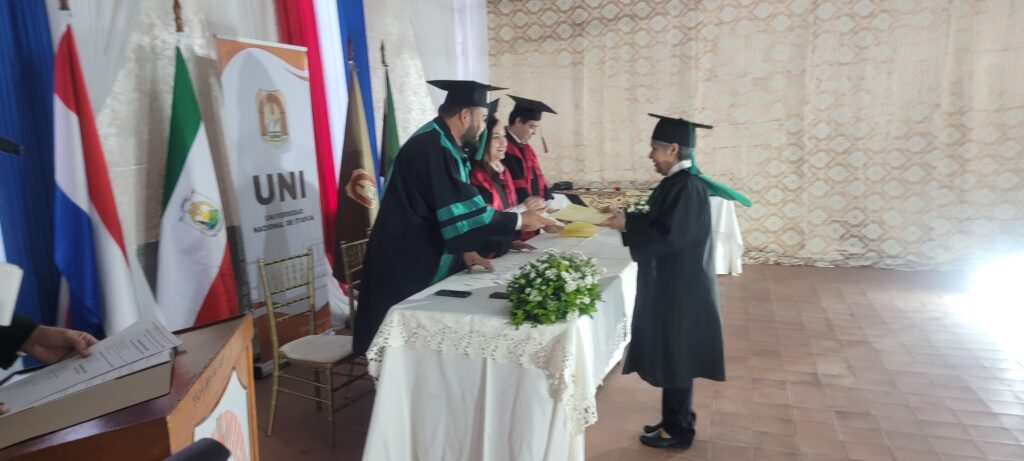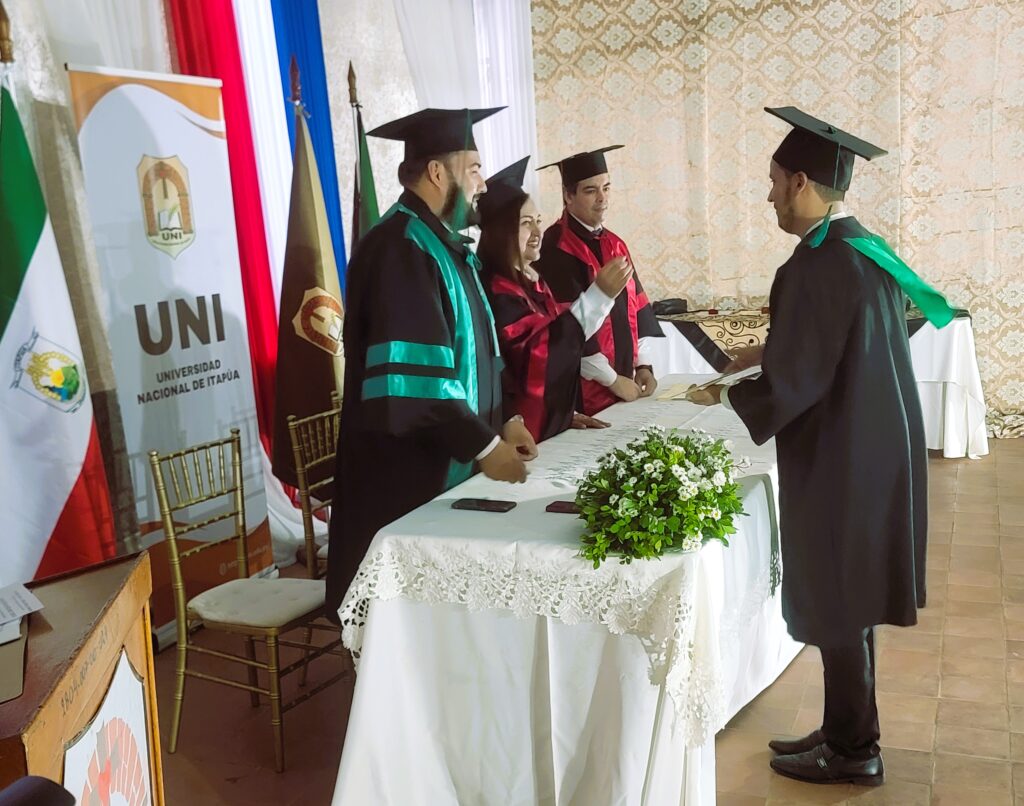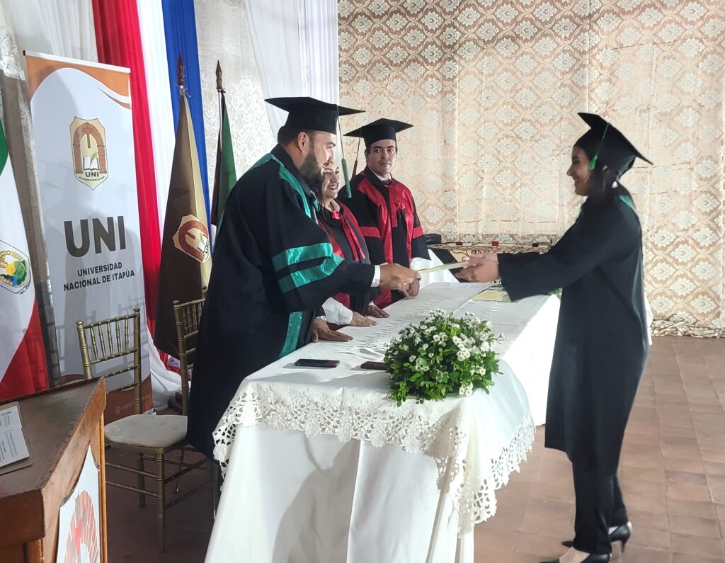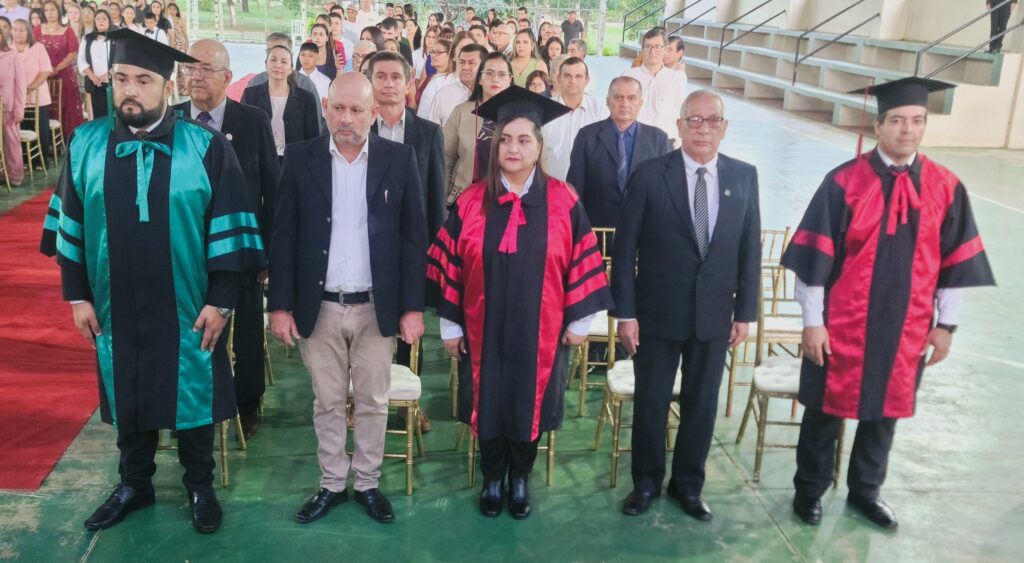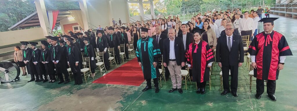 En el Polideportivo Municipal de la ciudad de General Artigas se desarrolló el acto de egreso de la Facultad de Ciencias Agropecuarias y Forestales (FaCAF) -Lic. En Administración de Cooperativas, Lic. En Administración de Empresas Agropecuarias e Ingenieros Agrónomos- de las sedes de General Artigas y San Pedro del Paraná de la Universidad Nacional de Itapúa (UNI). La promoción 2025 lleva por denominación “Innovación y Compromiso con el futuro sostenible” aprobada por Resolución del Consejo Superior Universitario Nº 123, del 01 de octubre de 2025.