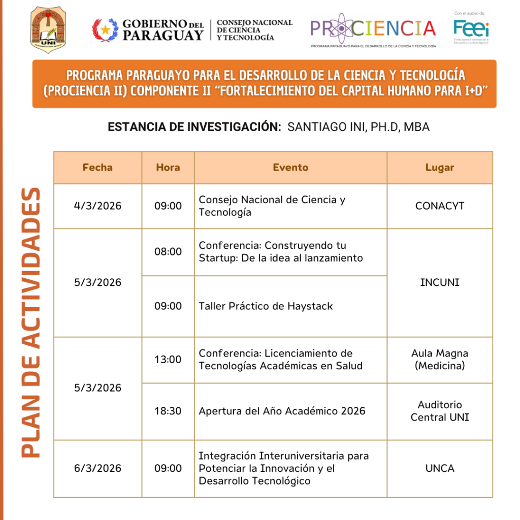 Durante su estancia se desarrollarán reuniones académicas, encuentros con investigadores, conferencias magistrales y espacios de trabajo colaborativo orientados al fortalecimiento de la investigación, la innovación y la cooperación internacional.