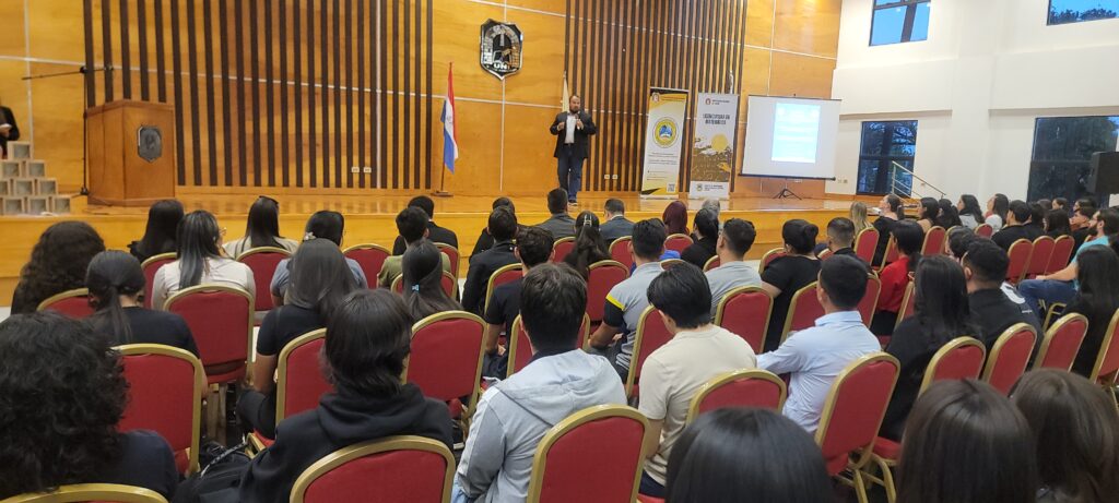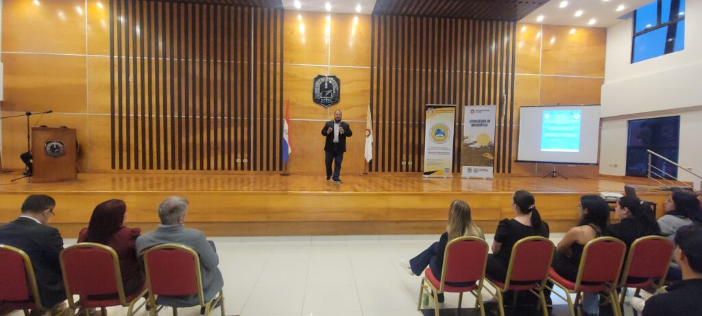 Posteriormente se llevó a cabo la actividad principal en el Auditorio Central de la UNI, con la conferencia titulada “Resolución de problemas con el Modelo Van Hiele mediante GeoGebra”, dictada por el Mag. Blas Antonio Benítez Cristaldo, de la Universidad Nacional del Este (UNE). La presentación estuvo orientada a mostrar herramientas pedagógicas actuales basadas en la visualización y el razonamiento geométrico.