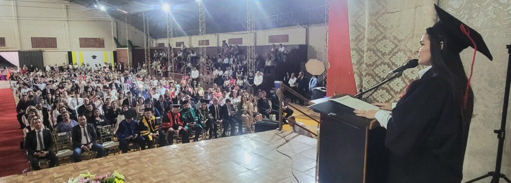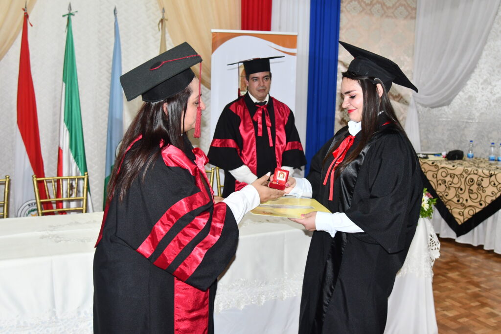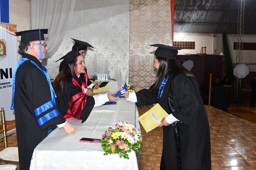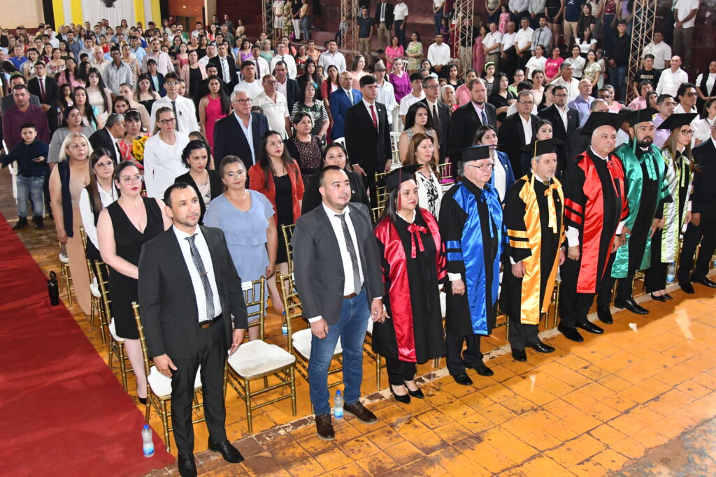 El momento cumbre de la noche fue el Juramento de Egresados, tomado por la Dra. Nelly Monges de Insfrán. A continuación, se procedió a la entrega de títulos de grado, que sella la culminación de años de esfuerzo y dedicación.