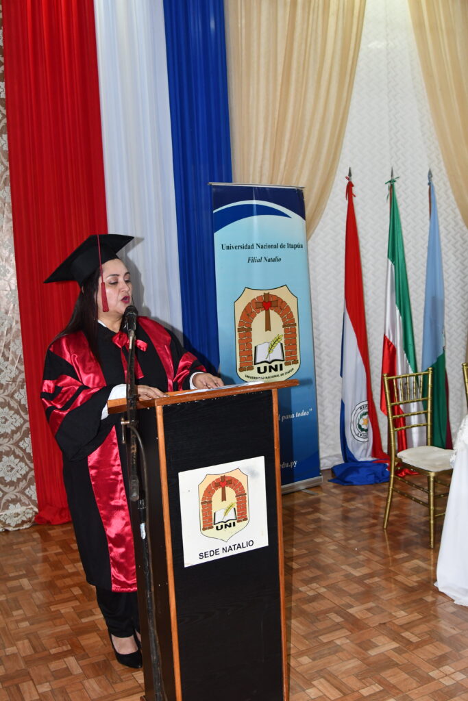 Voz de la Promoción: En representación de todos sus compañeros, la Abog. María Delcielo Elizabeth Rive Ferreira pronunció un elocuente discurso, reflejando el sentir y los desafíos de la nueva generación de profesionales.