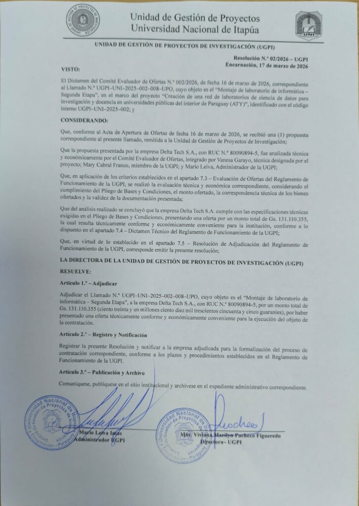 Proyecto: «Creación de una red de laboratorios de ciencia de datos para investigación y docencia en universidades públicas del interior de Paraguay (ATY)».