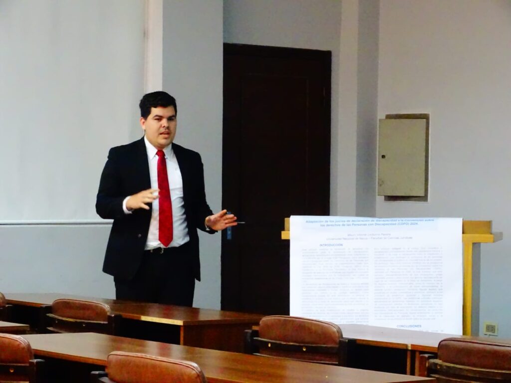 En dicho espacio académico, el egresado presentó el trabajo de investigación titulado “Adaptación de los juicios de declaración de discapacidad a la Convención sobre los Derechos de las Personas con Discapacidad (CDPD) – 2024”, el día 25 de octubre de 2025.