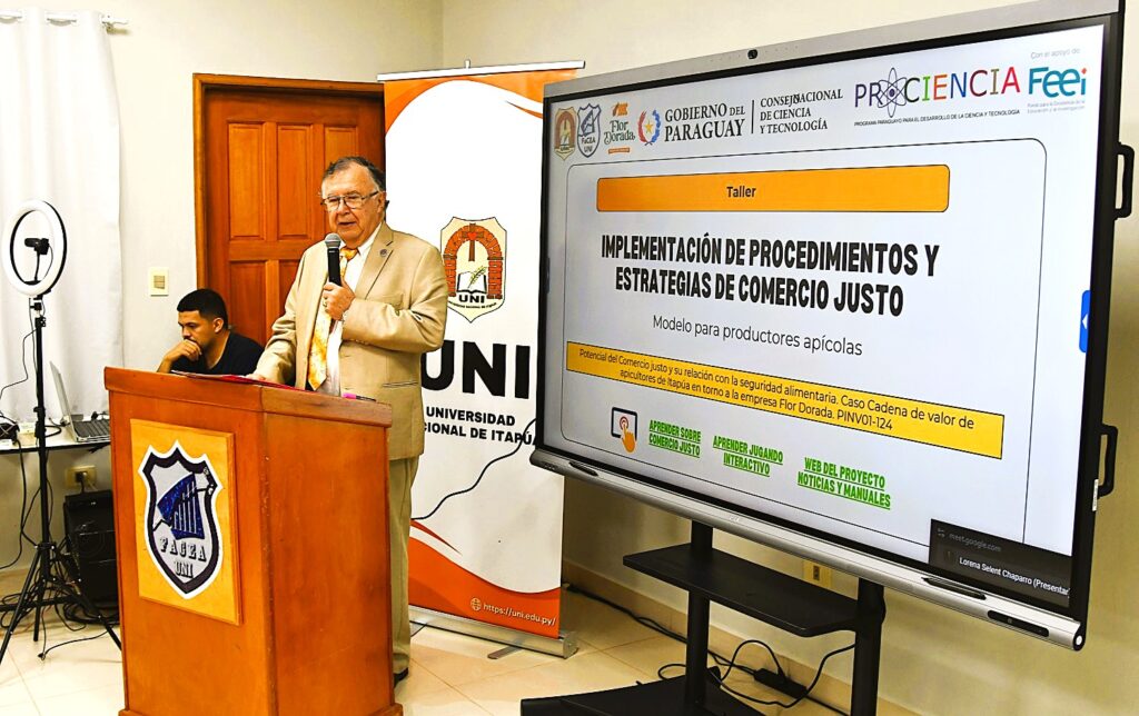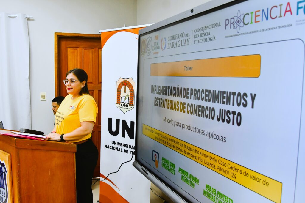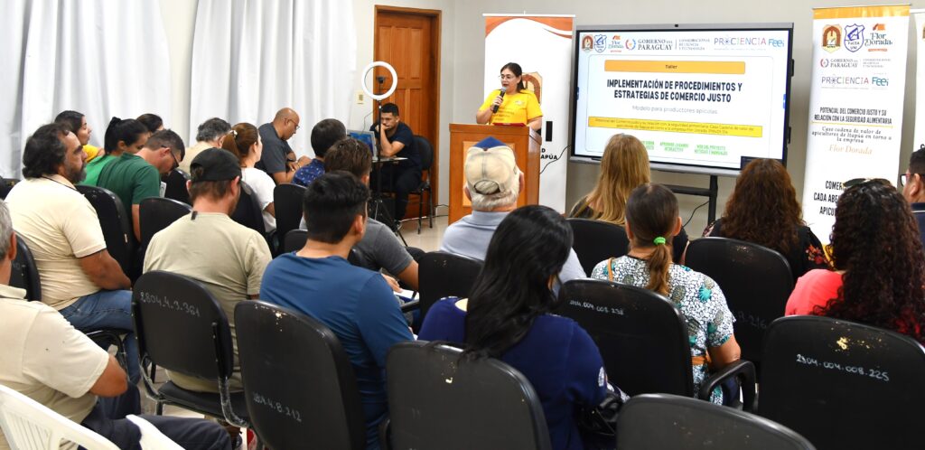 El taller estuvo a cargo del equipo de investigación del proyecto, integrado por Gladys Romero, Silvia Amarilla, Lorena Selent, Javier Gamarra, Sergio Michel, Mabel Casco y Analía Benítez. Durante la jornada se abordaron los principales ejes del análisis de la cadena de valor de la miel, orientados a la implementación progresiva del sistema de comercio justo en el sector apícola de Itapúa.