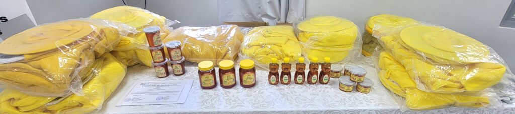 En ese marco, se realizó la entrega de trajes protectores a las familias apicultoras, como parte de los requisitos de seguridad y bienestar productivo vinculados a estándares internacionales.