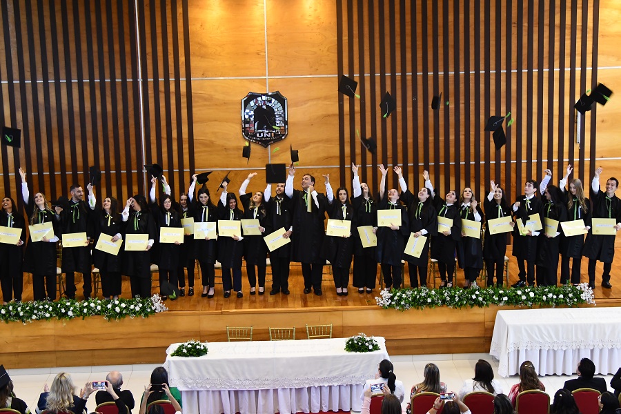 El acto, que se desarrolló en el Auditorio Central del Campus Universitario, este jueves 4 de diciembre de 2025, dio apertura con el ingreso de los egresados al recinto institucional, acompañados de sus respectivos padrinos.